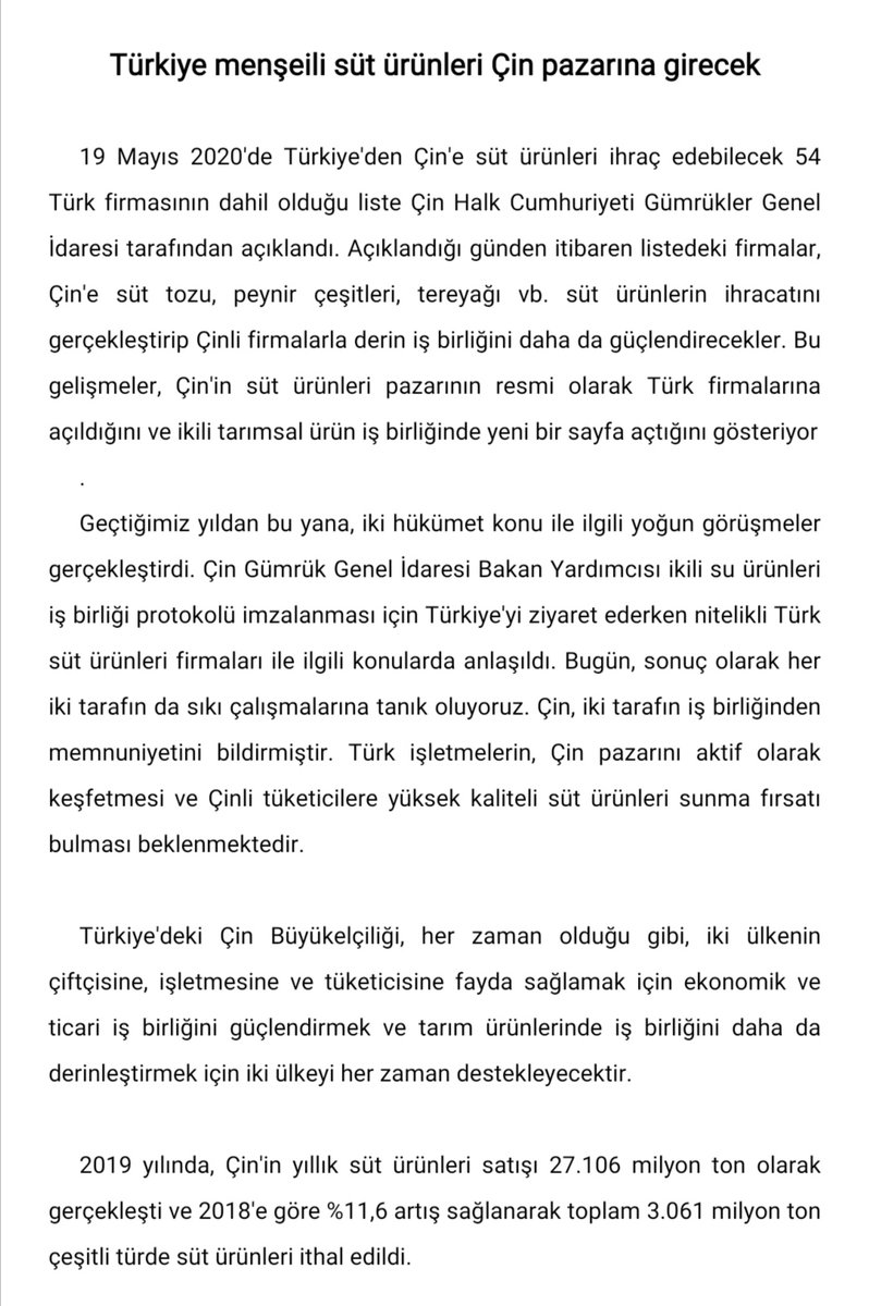 Turkiye Cin Den Hayvansal Urun Alimini Durdurdu