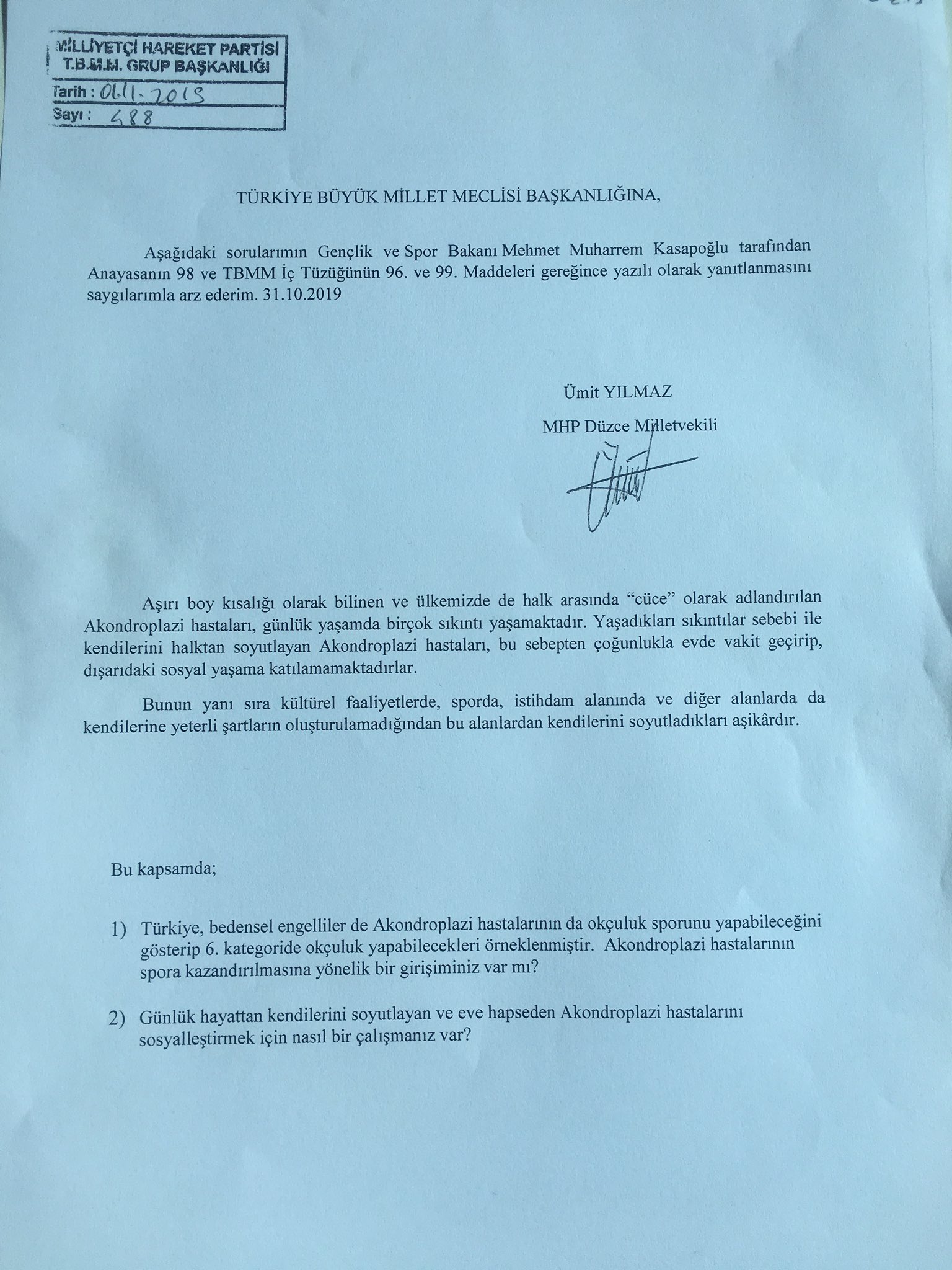 Umit Yilmaz On Twitter Genclik Ve Spor Bakanimiz Sayin Kasapoglu Na Sorduk Gunluk Hayattan Kendilerini Soyutlayan Ve Eve Hapseden Akondroplazi Hastalarini Sosyallestirmek Icin Nasil Bir Calismaniz Var Tbmm Mhp Https T Co 2f2rh3fwzc