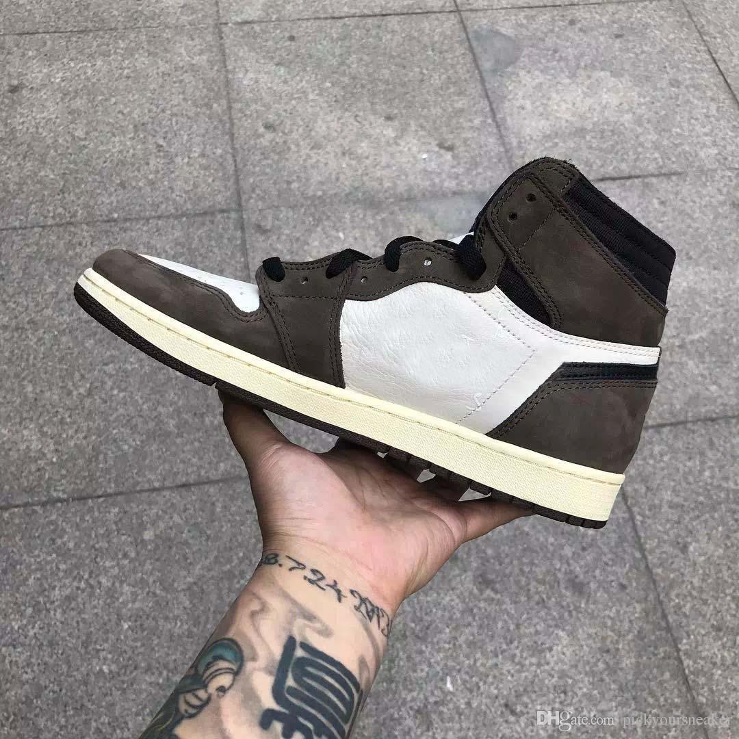 Satin Al Nike Air Jordan 1 X Travis Scott Erkek Basketbol Ayakkabi Sneakers 1 1 S Suet Kahverengi Erkekler Boy Athentic Spor Tasarimcisi Egitmenler Kosu Ayakkabilari Ile Kutu Tl503 22 Dhgate Comda