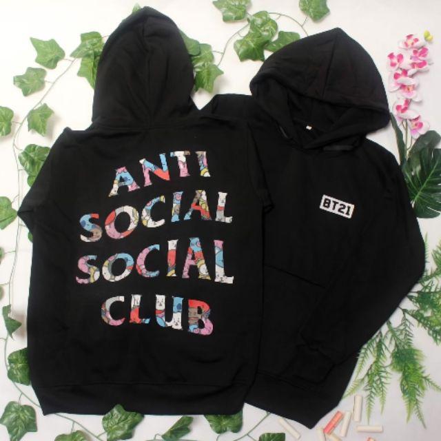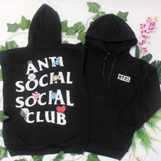 Kpop Bts Bt21 X Anti Social Social Club Black Hoodie Shopee Indonesia