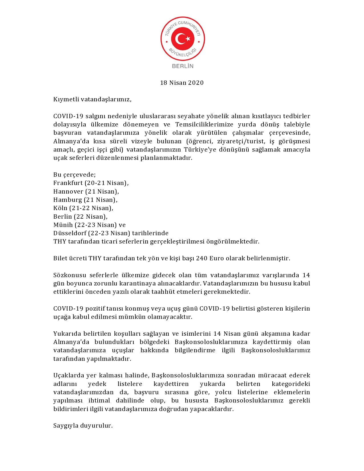 T C Berlin Be On Twitter Almanya Da Vizeyle Gecici Olarak Bulunup Ulkemize Donmek Isteyen Vatandaslarimiz Icin Duzenlenecek Ticari Seferler Hakkinda Duyuru Https T Co Qlzalfc27u