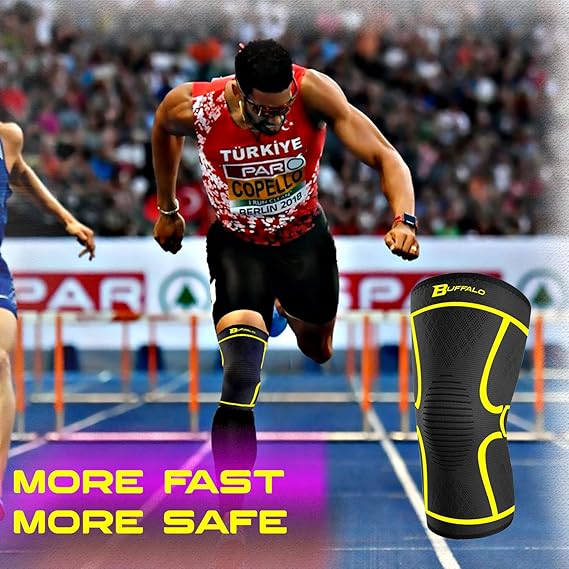Buy Buffalo Knee Brace Compression Sleeve Best Knee Brace For Men Women Knee Support For Running Basketball Weightlifting Gym Workout Sports Please Check Sizing Chart L Online