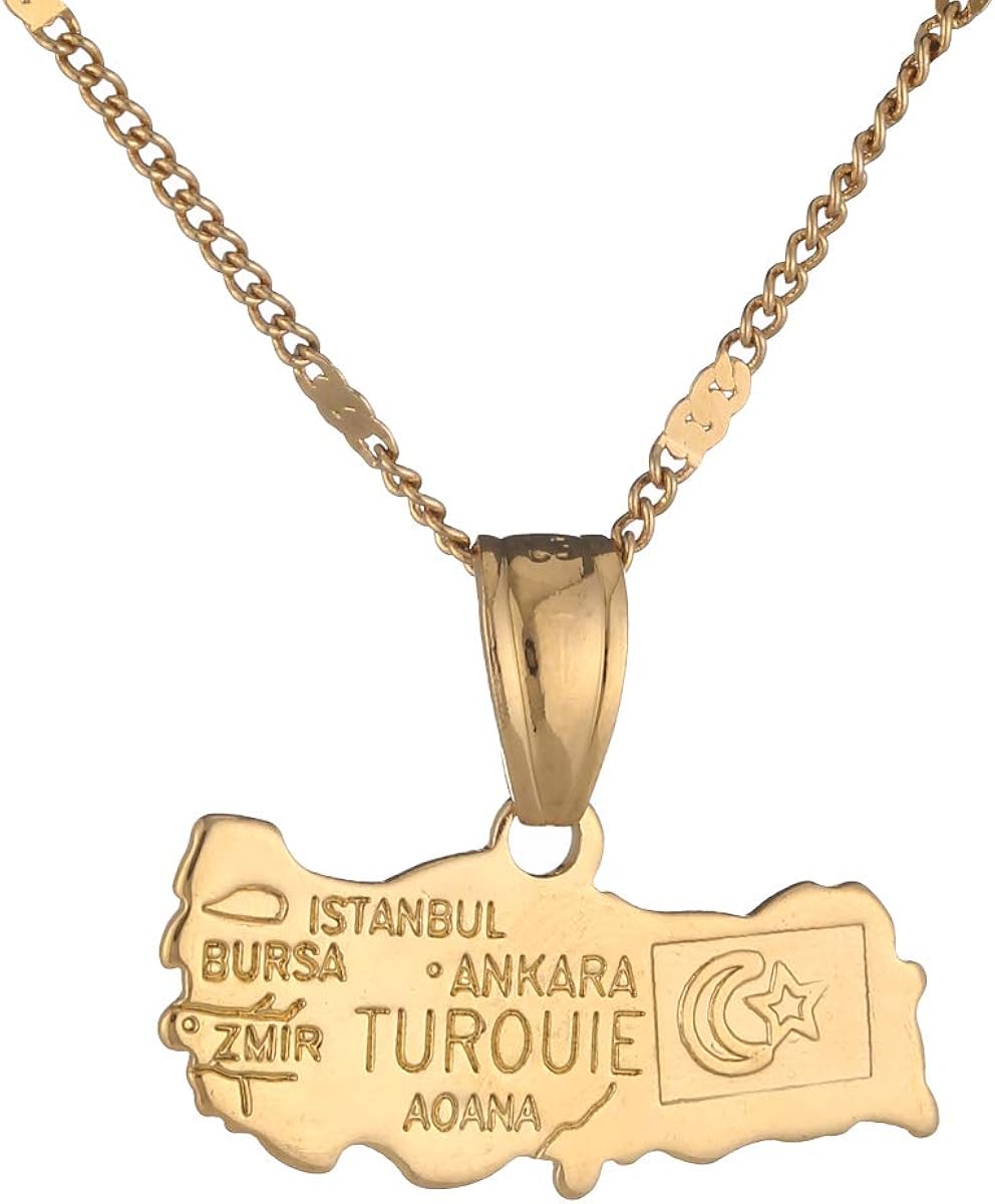 Turouie Turkey Map Pendant Necklace Women Turkish Flag Gold Color Jewelry Turkiye Cumhuriyeti For Girl Amazon Co Uk Jewellery