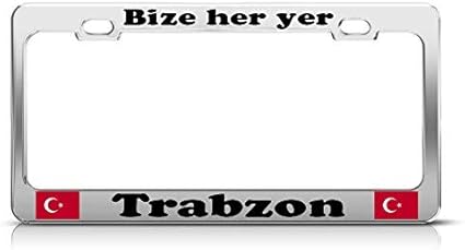 Amazon Com Bize Her Yer Trabzon Turkey Heavy Turkiye Heavy Duty Metal Chrome License Plate Cover For Car Front Back Decor Vanity Tag Gift Sports Outdoors