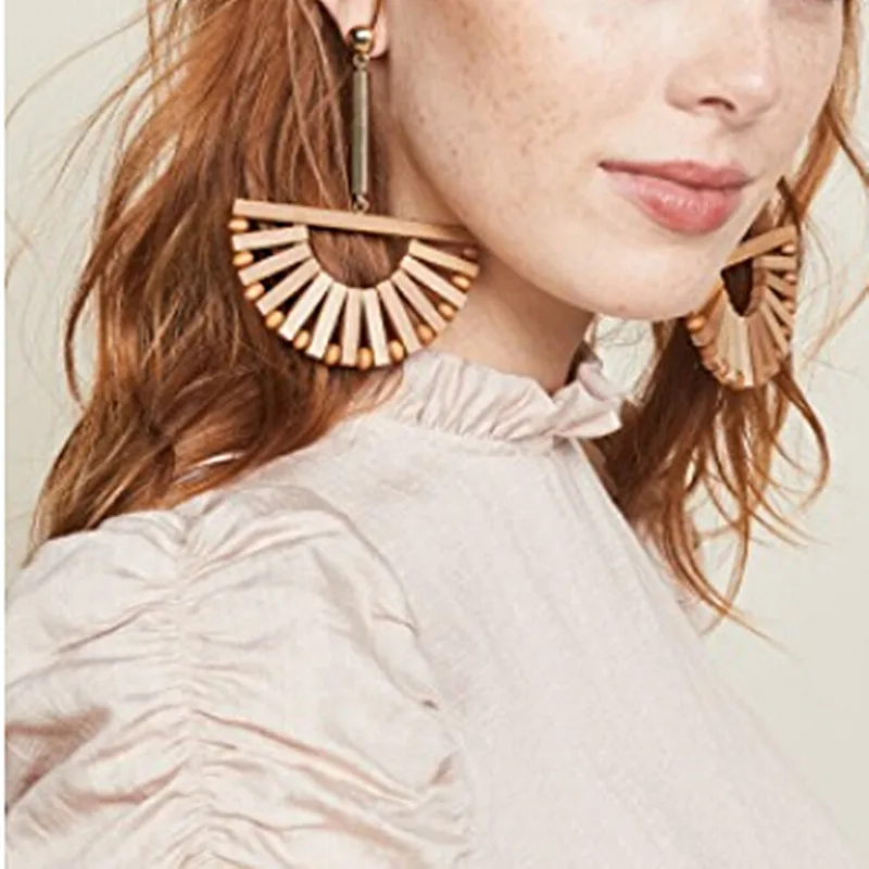 Dvacaman Cult Gaia Round Fan Wooden Big Drop Earrings Women Boho Handmade Woven Rattan Jewelry Girl Summer Party Dangle Earrings Drop Earrings Aliexpress