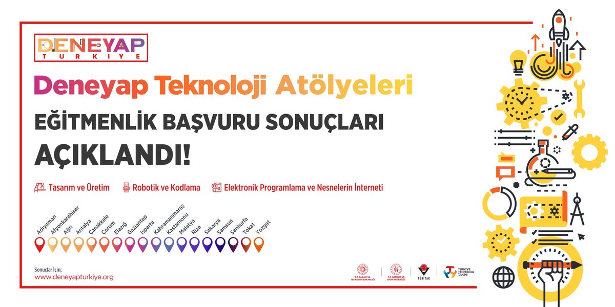 Deneyap Turkiye On Twitter Deneyap Teknoloji Atolyeleri Egitmenlik Basvuru Sonuclari Aciklandi Yogun Ilginiz Icin Tesekkurler Tasarim Ve Uretim Robotik Ve Kodlama Elektronik Programlama Ve Nesnelerin Interneti Sonuclar Icin