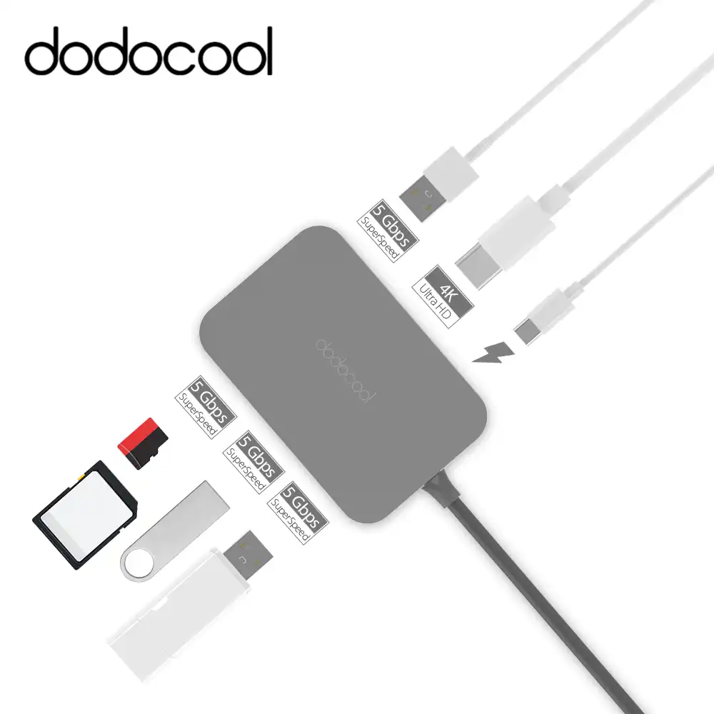 Dodocool 7 In 1 Usb 3 0 Hub Type C 4k Video Hd Output Sd Tf Card Reader Usb C Hub For Apple Macbook Air Pro Laptop Tablet Pc Mac Usb 3 0 Hub 3 0 Hubusb C Hub