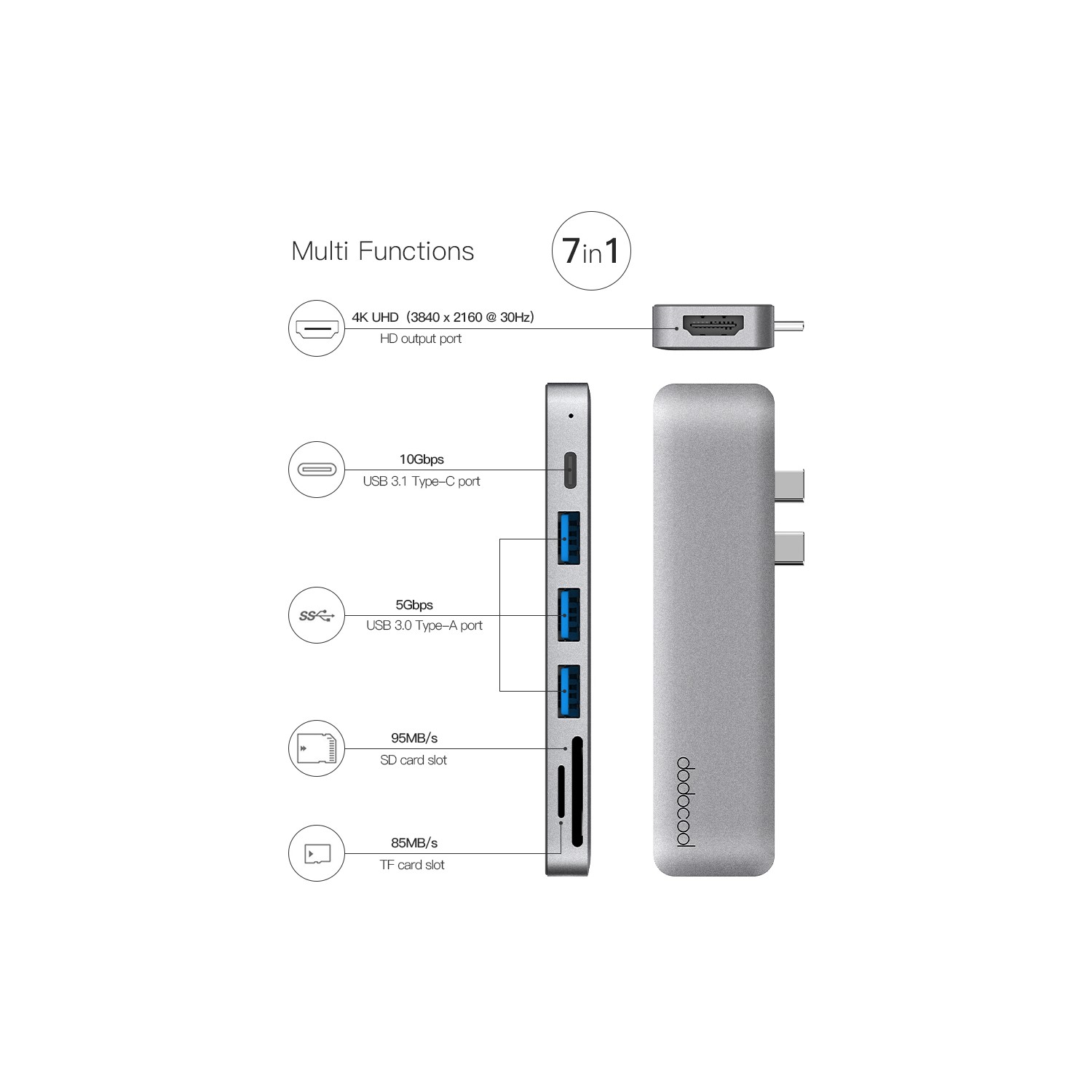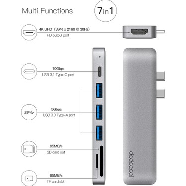 Dodocool Dc69gy Aluminyum 7in2 Macbook Pro Air 4k Hdmi Sd Usb Hub Fiyati Ve Ozellikleri Gittigidiyor