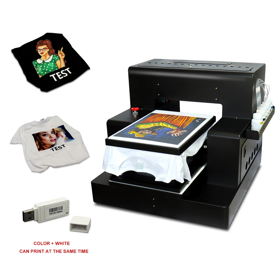 Automatic Dtg A4 Dark T Shirt Jeans Textile Fabric Printer With Textile Ink Set With Touch Screen White Ink Cycle System Printers Aliexpress