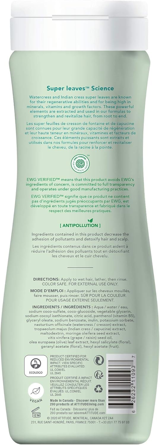 Amazon Com Attitude Super Leaves Hypoallergenic Nourishing Strenghtening Shampoo Grapeseed Oil Olive Leaves 16 Fluid Ounce Health Personal Care