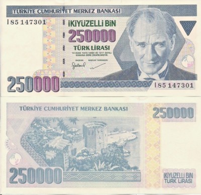 Turkey P211 250 000 Lira Pres Ataturk Kizikale Fort Unc Large Uv Image Ebay