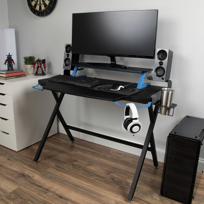 Z60 Gaming Desk With Led Lights Controller Stand Cup Holder Headphone Hook Black