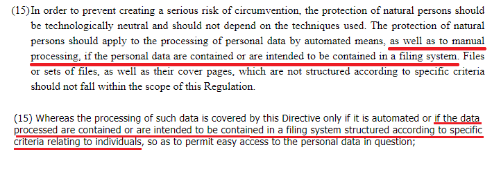 Hasan Selcuk Turan On Twitter Birincisi Gdpr In Digeri 95 46 Ec Nin Recital 15 I Ben Her Ikisinden De Veri Kayit Sistemi Sartinin Otomatik Olmayan Islemler Icin Oldugunu Anliyorum Https T Co Tjt6ysqdql