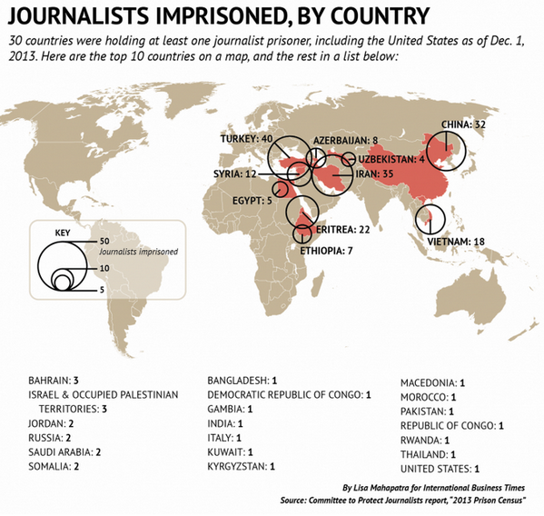 Conrad Hackett On Twitter Most Journalists Jailed Dec 1 2013 1 Turkey 2 Iran 3 China 4 Eritrea 5 Vietnam 6 Syria 7 Azerbjn 8 Ethiopia 9 Egypt Http T Co N6ssblmgjh