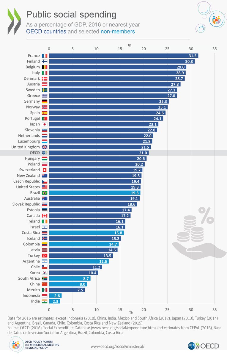 Conrad Hackett On Twitter Public Social Spending As Of Gdp France 32 Finland 31 Italy 29 Germany 25 Japan 23 Uk 22 Switzerland 20