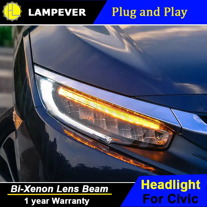 Hlc Car Headlight For Honda Civic 10th 2016 Full Led Headlights With Yellow Moving Turn Light Head Lamp Led Drl Front Light Headlights For Led Drlcar Headlight Aliexpress