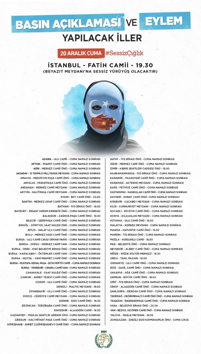 Serkan Nergis On Twitter Ihh Olarak Dogu Turkistan Icin Yarin Tum Turkiye De Meydanlarda Olacagiz Eylem Yapilacak Illerin Yer Ve Saatleri Ekteki Gorselde Mevcuttur Sizlerde Bulundugunuz Ilde Yapilacak Eylemlere Destek Olarak Dogu Turkistan