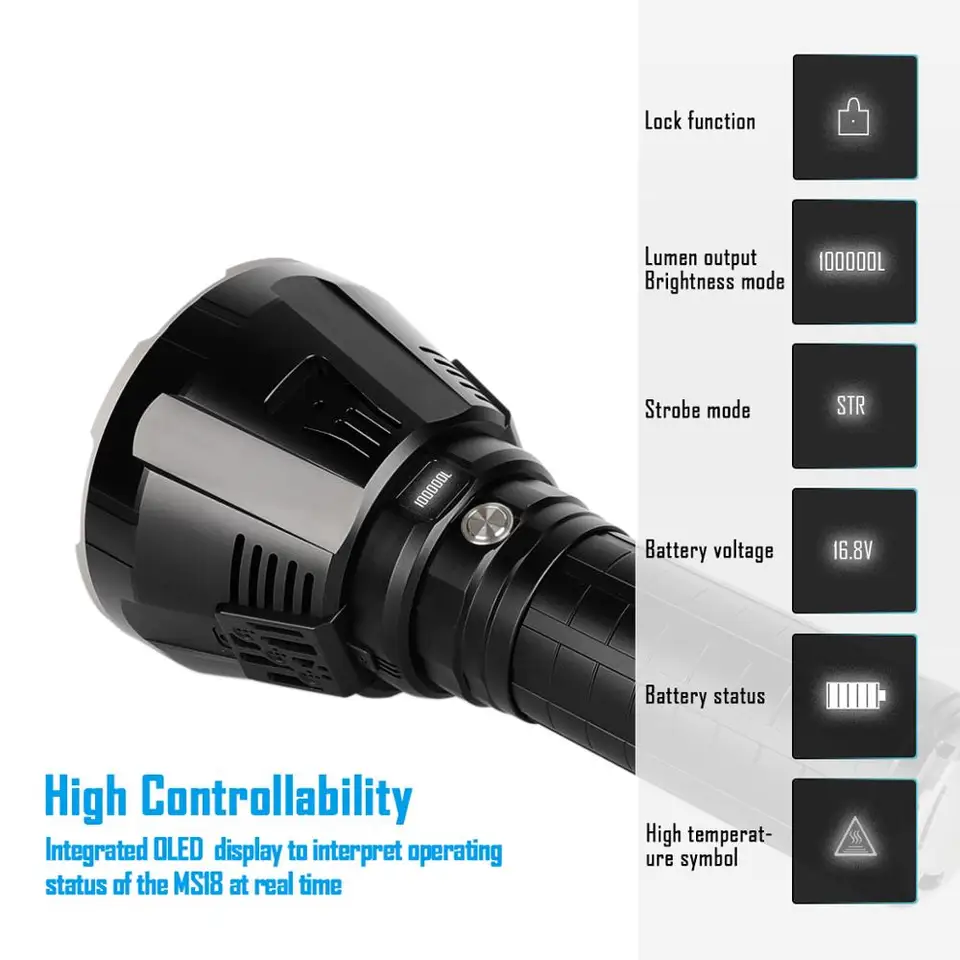 Imalent Ms18 Powerful Flashlight 100 000 Lumens Monster Torch With Led Display Super Bright Spotlight For Camping Hiking Amazon Co Uk Diy Tools