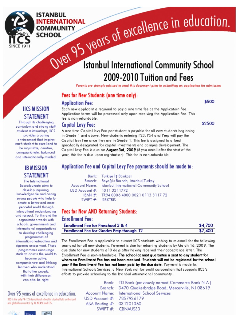 Iics Tuition 2009 2010 Fee Tuition Payments