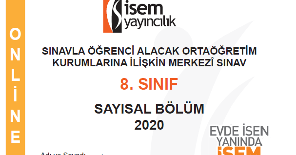 Isem 2020 8 Sinif Sozel Sayisal Turkiye Geneli Deneme Isem Yayincilik