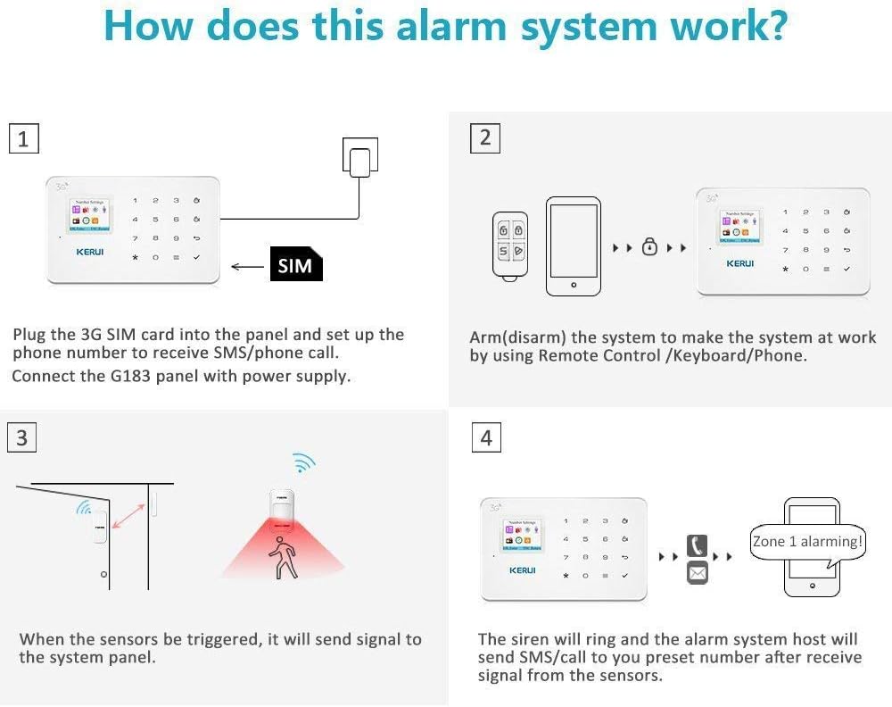 Amazon Com Kerui G183 Wireless 3g Gsm Home Security Alarm System Diy Auto Dial Burglar Alarm Kit App Control By Text Not Support Wifi And Or Landline Camera Photo