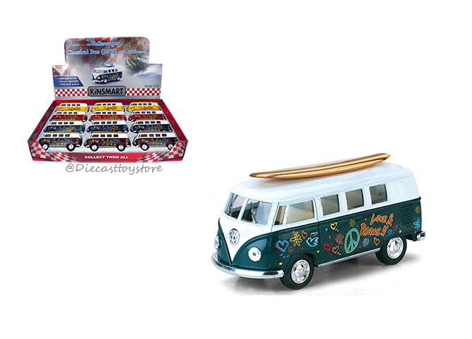 Kinsmart 1 32 1962 Volkswagen Classical Bus With Surfboard And Decals Set Of 4 Cars Trucks Vans Contemporary Manufacture