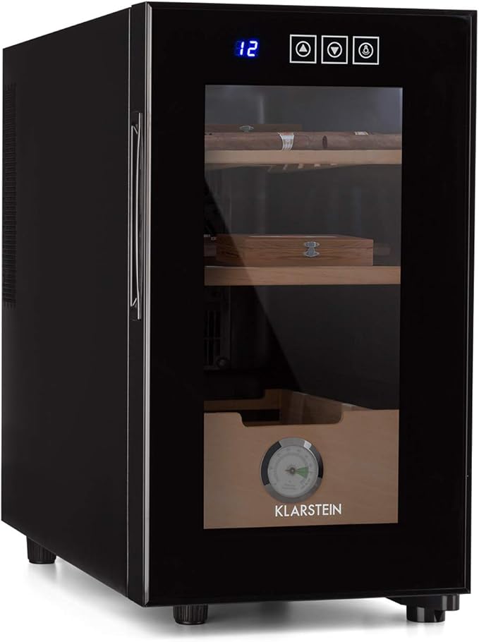 Klarstein El Presidente 23 Humidor 50 Watt Power Consumption Cedar Wood 23 Litre Volume Store 100 To 150 Cigars 12 23 C Internal Temperature Humidity To 70 Led Touch Black Amazon Co Uk Kitchen Home