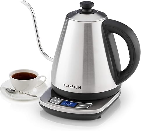 Klarstein Garcon Pro Kettle Tea Maker 1 Liter Volume 1850 2200 Watts Of Power Warming Function Intuitive Operation Precise Temperature Setting Stainless Steel Housing Silver Amazon Co Uk Kitchen Home