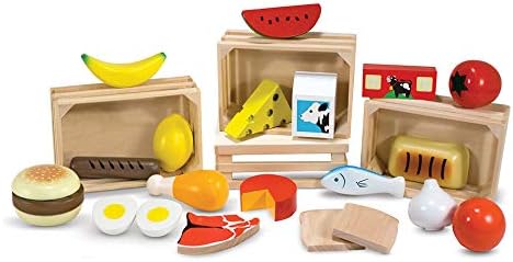 Melissa Doug Play Food Groups 21 Hand Painted Wooden Pieces 4 Crates Toy New Wooden Handcrafted Toys Preschool Toys Pretend Play