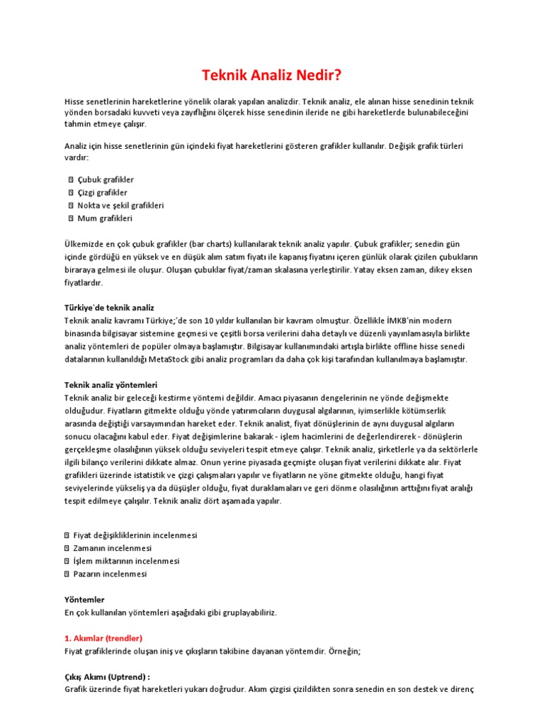 Ileri Teknik Analiz Uygulamalari Ve Bu Uygulamalarin Imkb De Test Edilmesi Pdf Ucretsiz Indirin