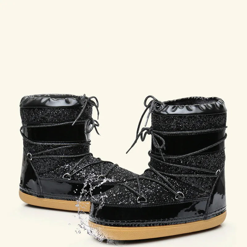 Swonco Bling Sequins Snow Boots Women Velvet Fur Warm Moon Shoes Platform 2019 New Female Luxury Ankle Boots Space Boot Shoes Mid Calf Boots Aliexpress