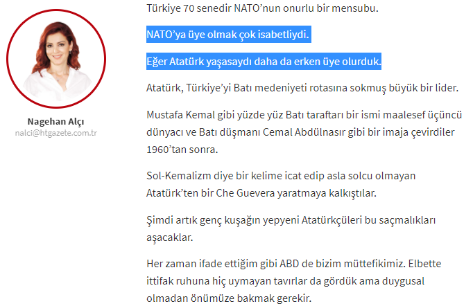 Malumatfurus على تويتر Nagehan Alci Haberturk Teki Bugunku Yazisinda Eger Ataturk Yasasaydi Daha Da Erken Uye Olurduk Demis Turkiye 1949 Da Kurulan Nato Ya 1952 De Uye Oldu Https T Co Zuszao5tpw Https T Co Db1rkoeomg