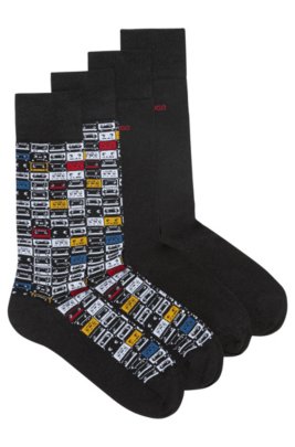 Hugo Two Pack Of Plain And Patterned Cotton Blend Socks