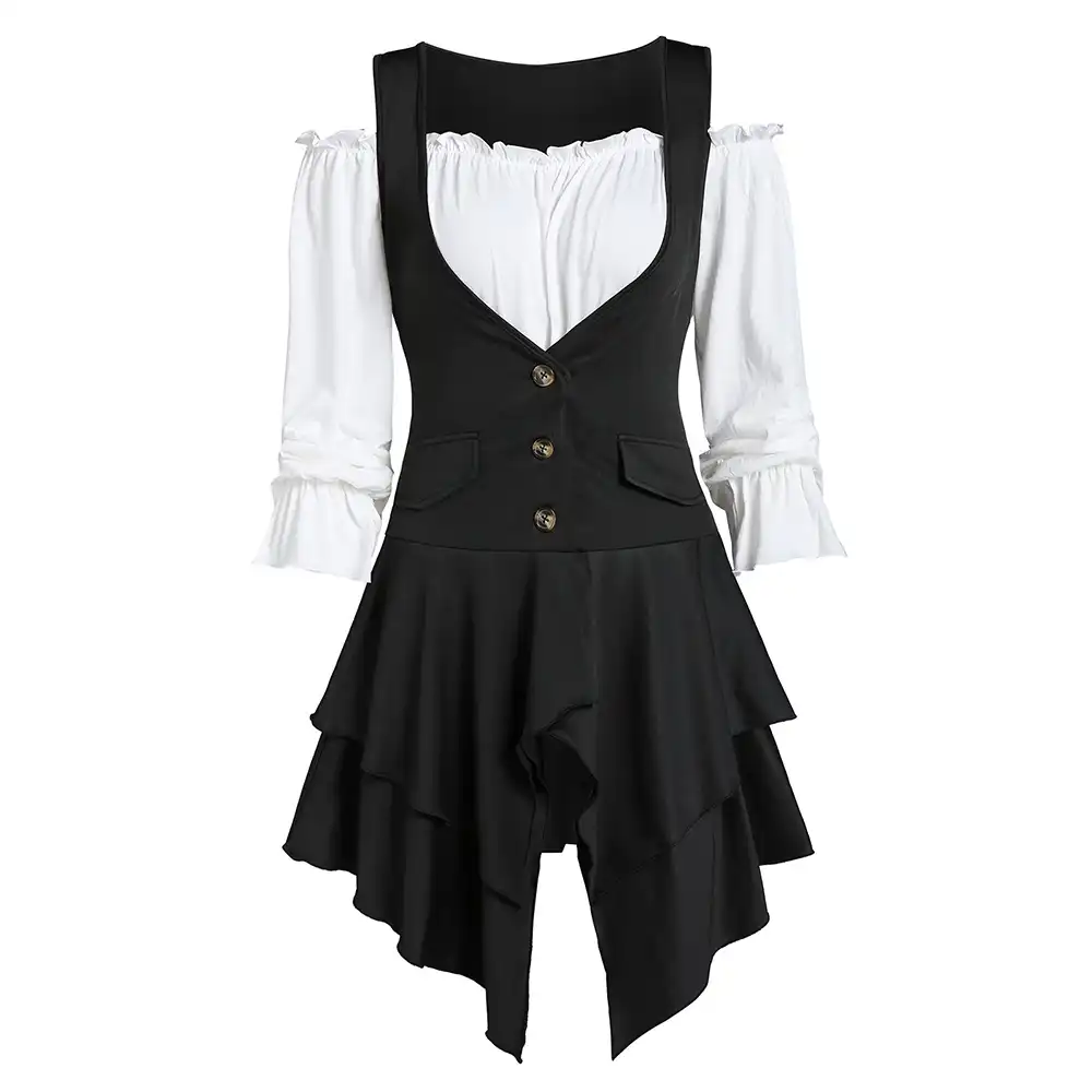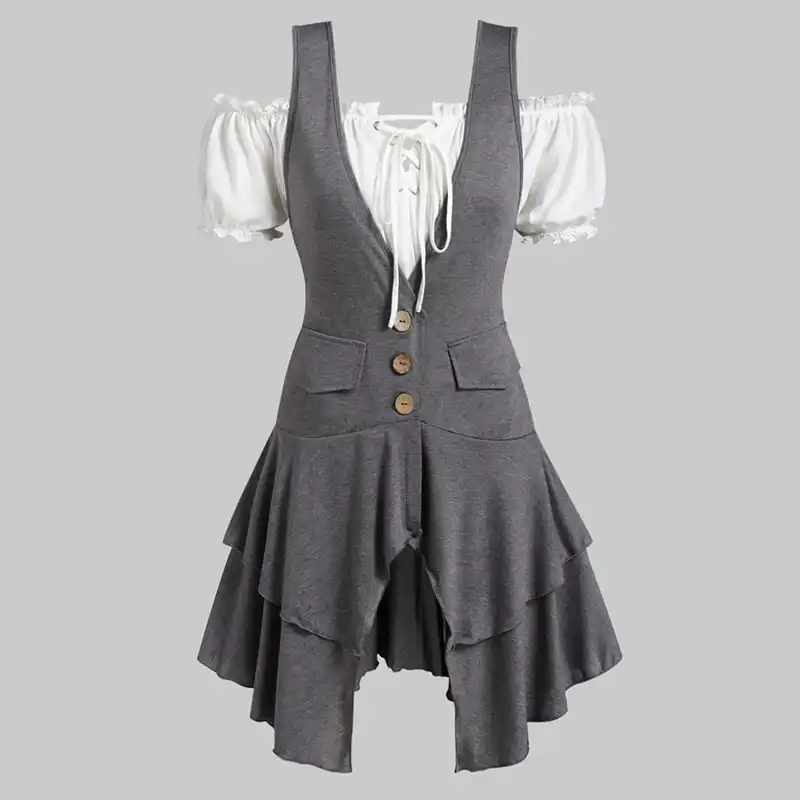 Rosegal Large Size Long Tunic Vintage Shirt Ruffles Gothic Blouse Women Summer Off The Shoulder Plain Top Lace Up Layered Vest Blouses Shirts Aliexpress