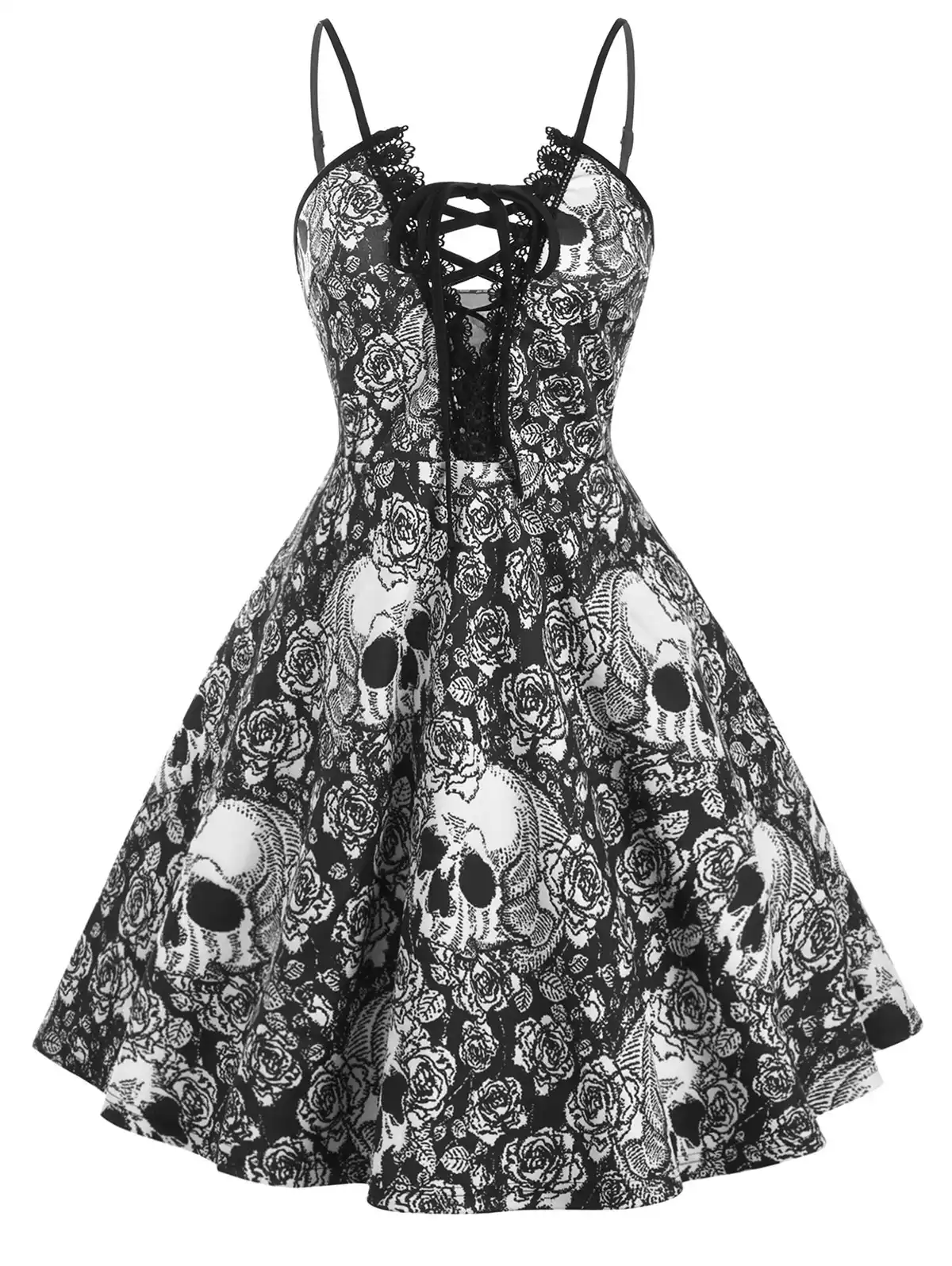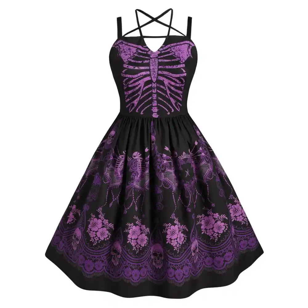 Rosegal Lace Up Halloween Festival Strap Dress Women Skull Print Large Size Cami A Line Dress Vintage Party High Waist Dress 5xl Dresses Aliexpress