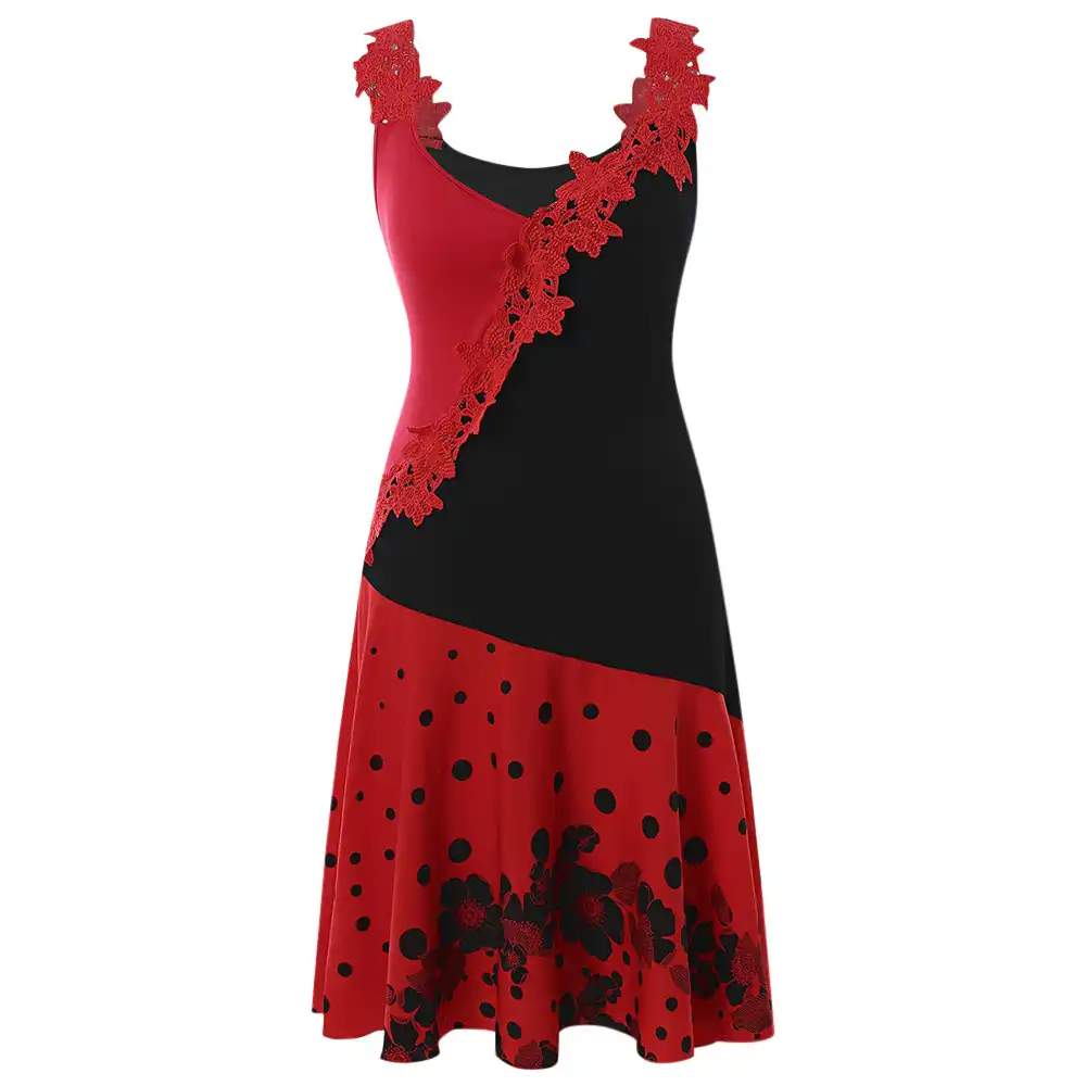 Rosegal Plus Size Lace Aesthetic Tank Dress Gothic Vintage Panel Two Tone Dress Women Summer Dot Print A Line Vestidos Femme Dresses Aliexpress