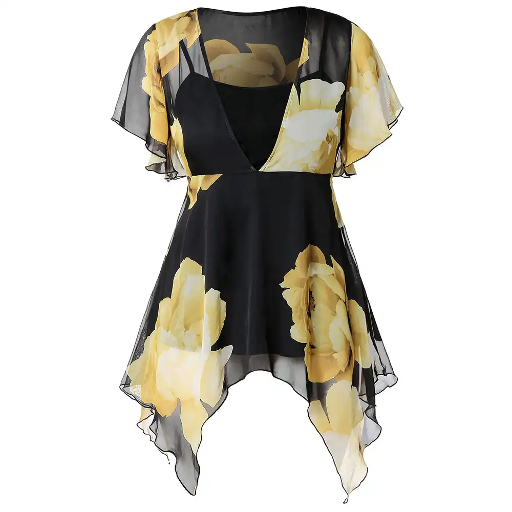 Rosegal Plus Size Floral Print Chiffon Asymmetrical Blouse Casual Short Sleeve Tops Elegant Women Summer Clothes Shirts 2019 Blouses Shirts Aliexpress