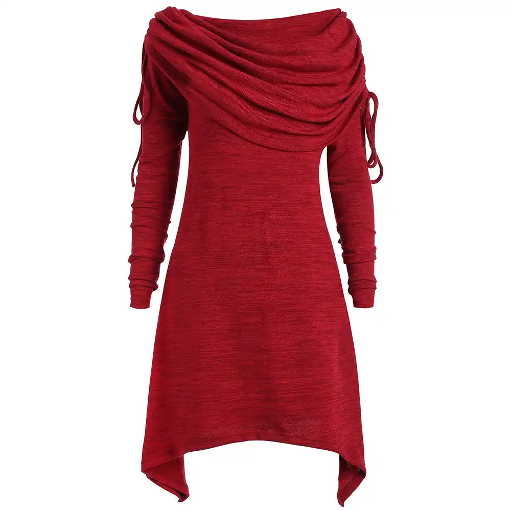 Rosegal Plus Size Dress Women Vestido Red Black T Shirt Dress Casual Off Shoulder Long Foldover Collar Ruched Dresses Robe Femme Dresses Aliexpress