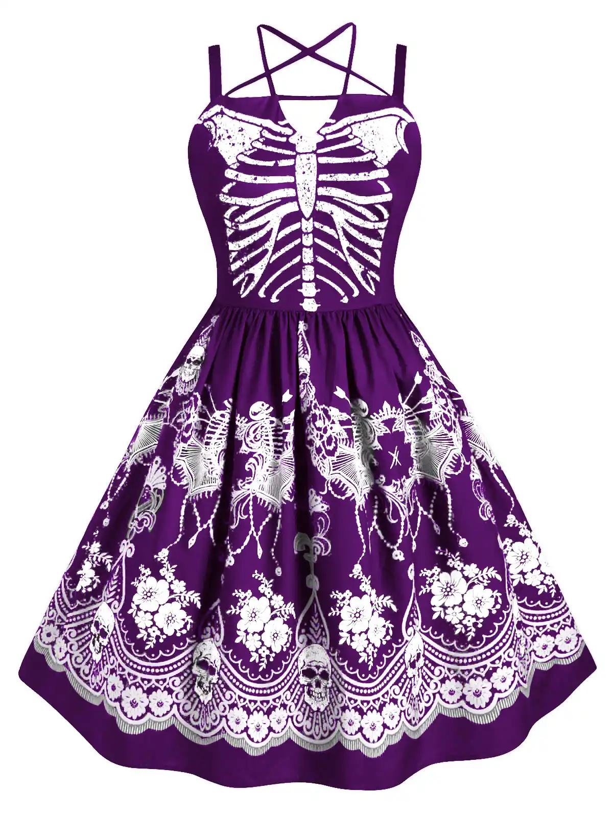 Rosegal Plus Size Skeleton Print Harness Criss Cross Halloween Dress Strappy Square Collar Sleeveless Vintage A Line Mini Dress Dresses Aliexpress