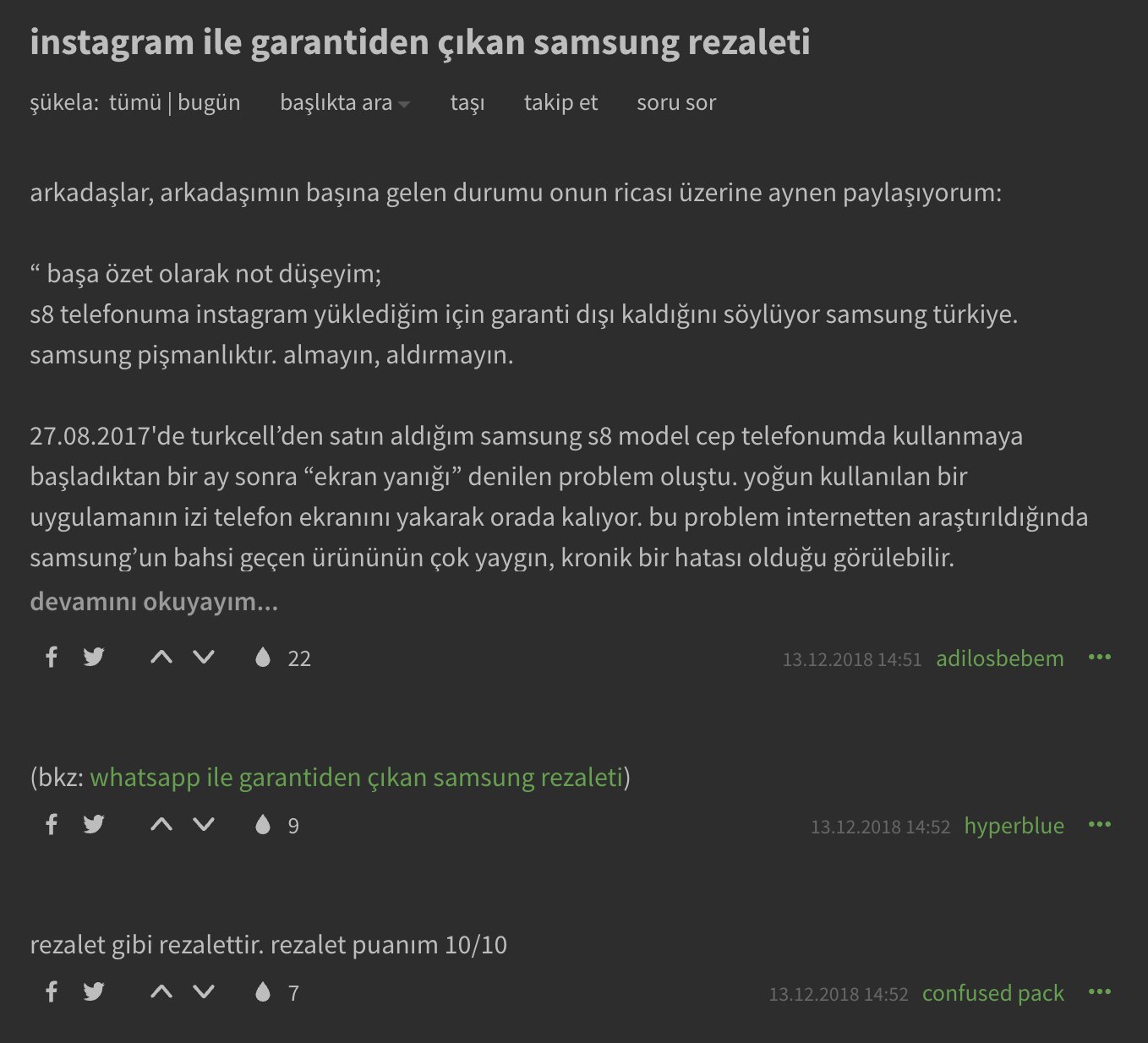 On Twitter Bu Dogru Olabilir Mi Samsungturkiye Turkcell 1 Aylik Samsung S8 Inin Ekrani Yanan Kullaniciya Instagram Kurdun Diye Yandi Cihazin Garanti Disi Servis Gorecek Tutari 1400 Denir Mi Yahu Https T Co Qb6ggsk9fb Https T Co