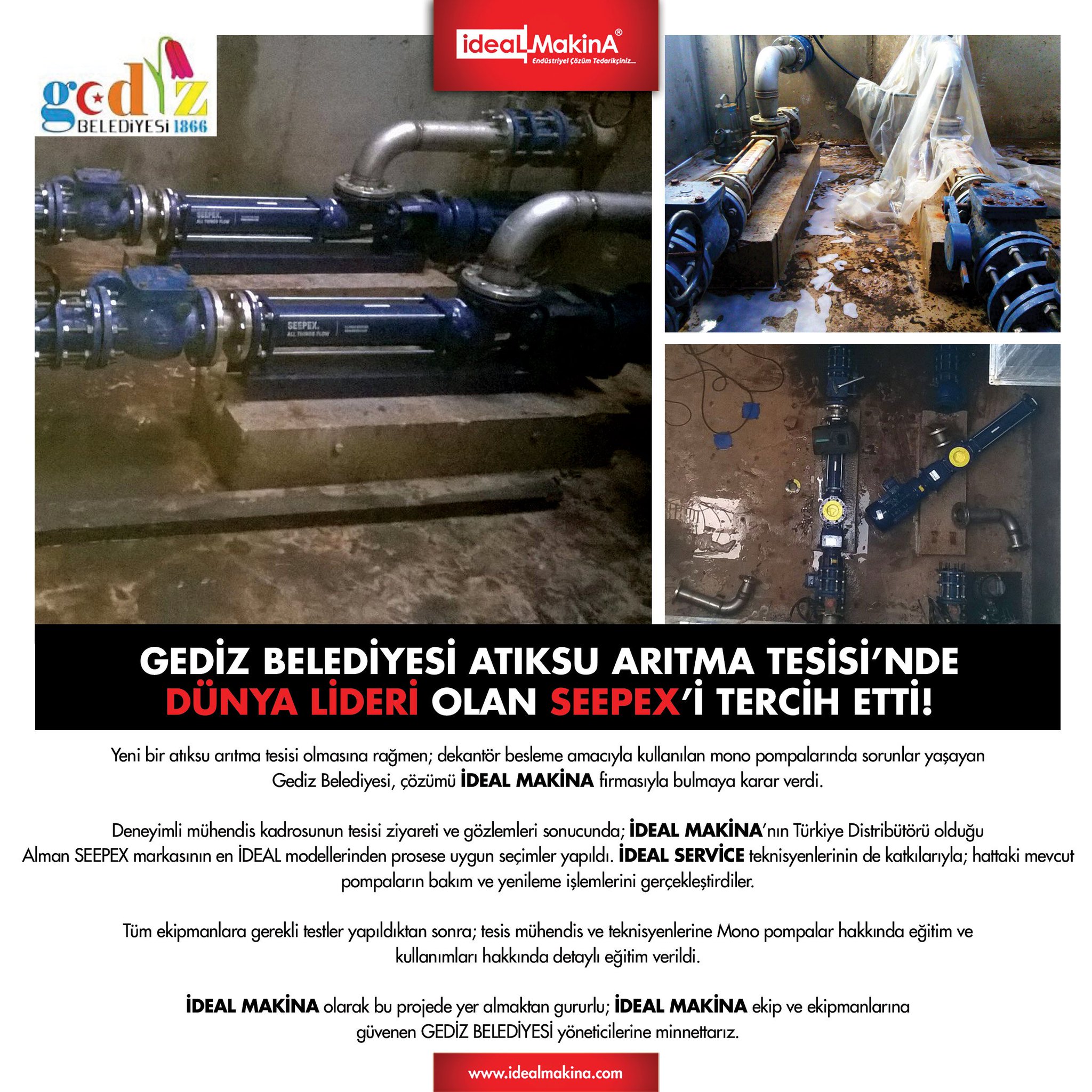 Ideal Makina On Twitter Gediz Belediyesi Atiksu Aritma Tesisi Nde Dunya Lideri Olan Seepex I Tercih Etti