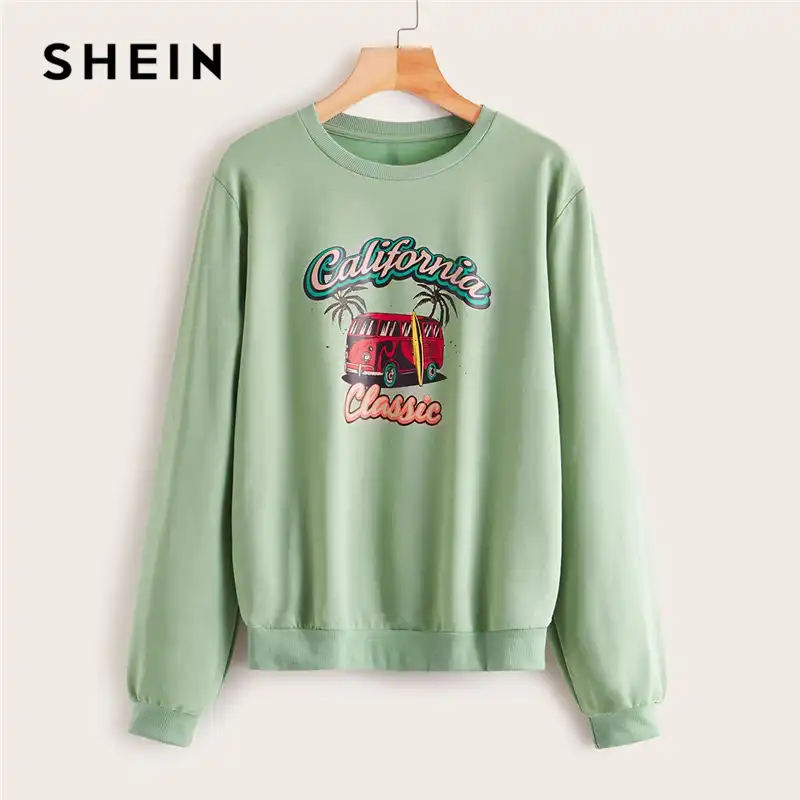 Shein Green Letter And Car Print Casual Sweatshirt Pullover Tops Women 2019 Autumn Long Sleeve Basic Ladies Fashion Sweatshirts Hoodies Sweatshirts Aliexpress