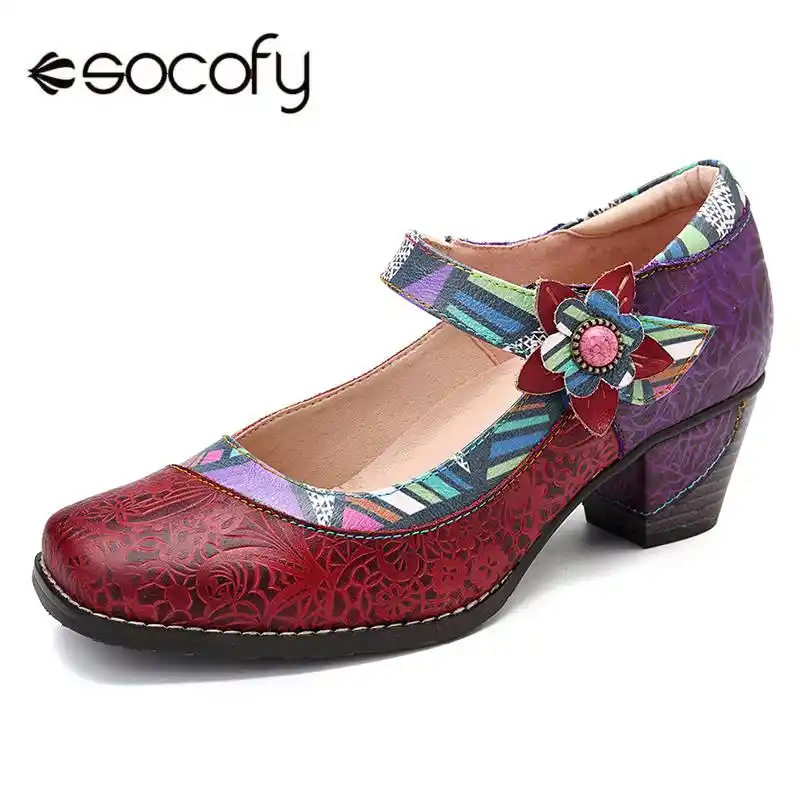 Socofy Retro Genuine Leather Flower Comfy Retro Pumps Loafers Bohemia Casual Shoes Women Shoes Spring Autumn Casual Shoes New Women S Pumps Aliexpress