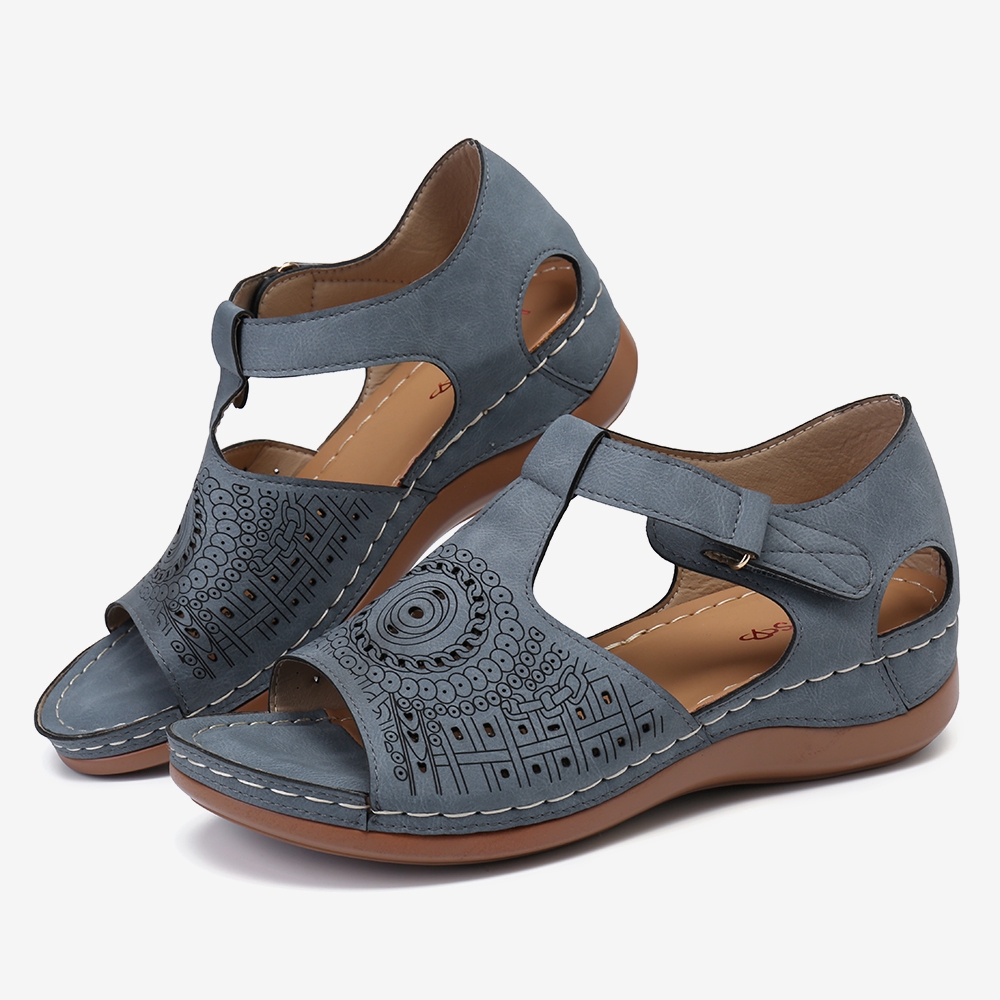 High Quality Socofy Socofy Super Comfy Hollow Genuine Leather Love Shape Soft Hook Loop Low Heel Sandals Newchic Mobile