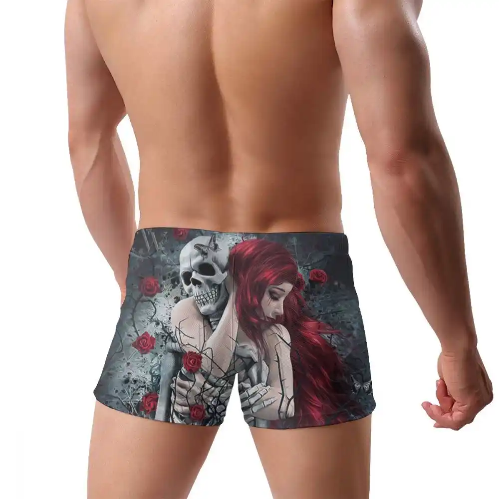 Red Haired Woman Hug Skull Skeleton Pattern 3d Printing Speedo Men S Bathing Male Swimming Trunks Men Boxer Swimwear Low Waist Two Piece Separates Aliexpress