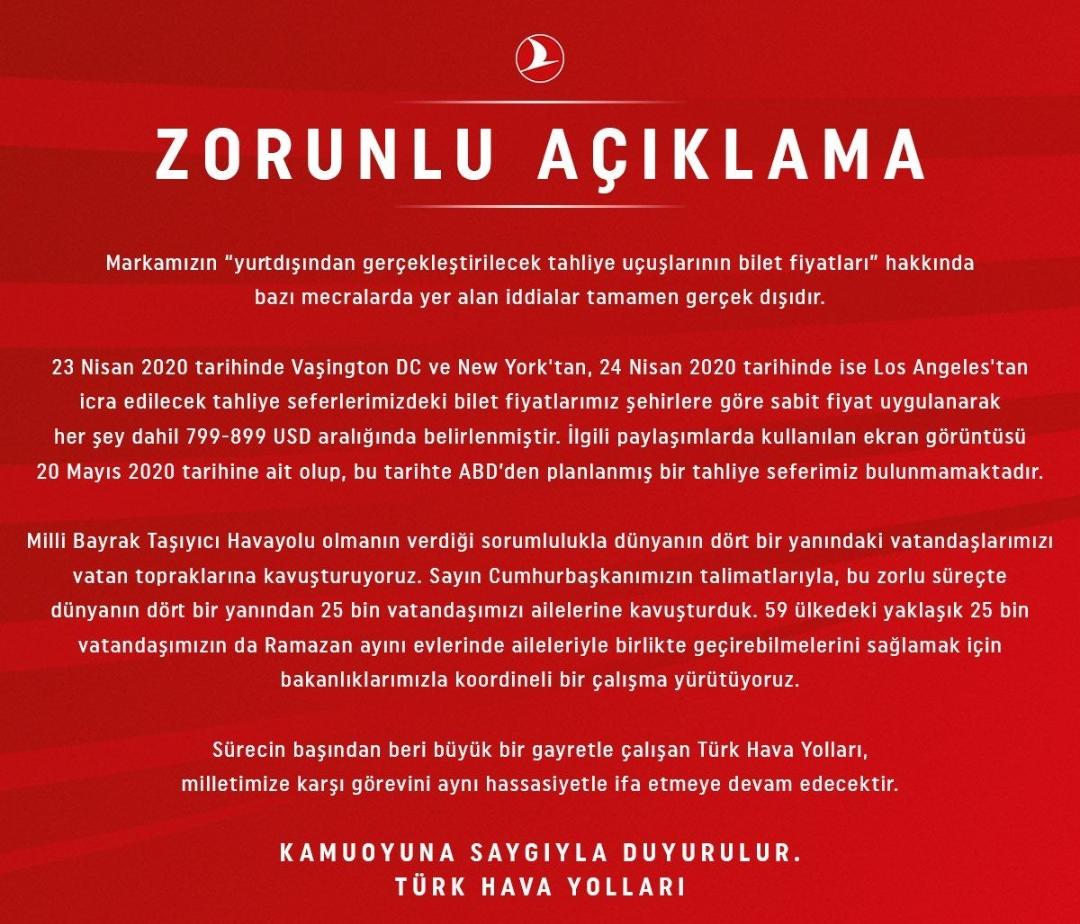 Baris Yarkadas On Twitter 2 Abd Den Turkiye Ye Donmeye Calisan Turkler Mesaj Yazarak Turkishairlines Yolculardan Gidis Donus Tutarinda Para Istiyor Bu Da 16 Bin Tl Yapiyor Bu Parayi Nasil Verelim Diye Soruyor