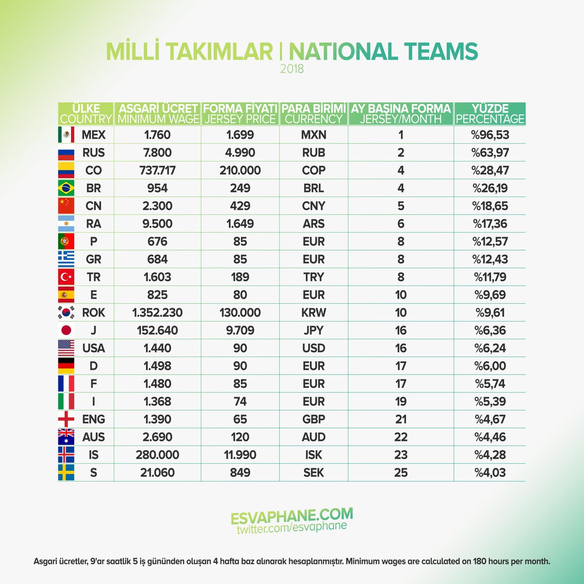 Esvaphane On Twitter Bu Konuyla Ilgili Bir Arastirma Yapmistik Tablolar Hala Asagi Yukari Guncelligini Koruyor Turkiye Futbolda Ve Ekonomide Dise Dokunur Ulkeler Arasinda Asgari Ucret Basina Forma Siralamasinda Ortalarda Yer Almasina Ragmen