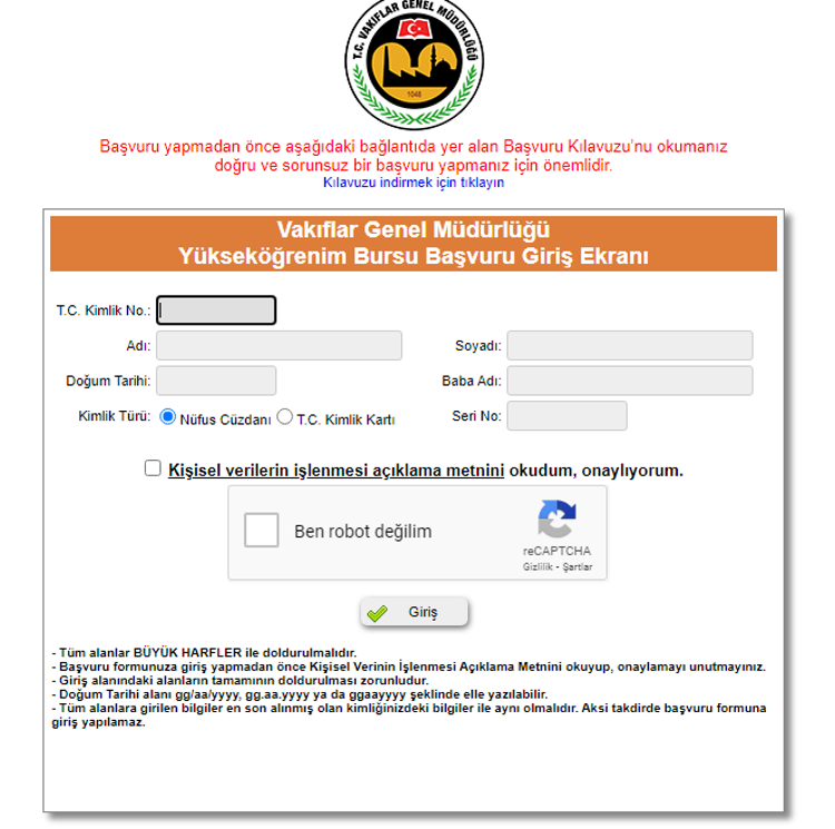 Turkiye Burslari Sisteme Giris Ekrani Turkiye