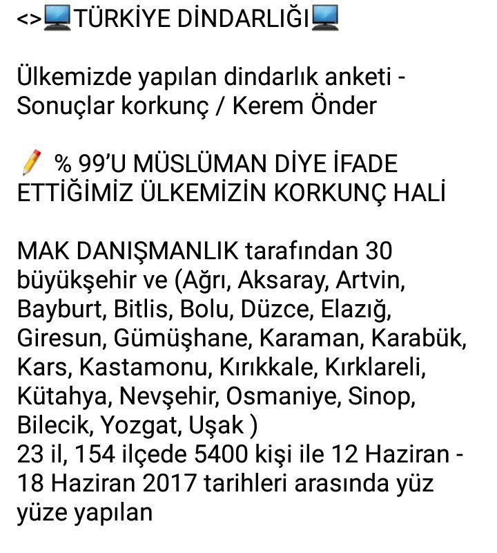 Faruk Ali در توییتر Mak Danismanlik Sirketi Gectigimiz Haziran Ayi Icinde Turkiye Dindarligi Konulu Bir Arastirma Yapmis Sonuclar Cok Ilginc Https T Co G6ce902edr