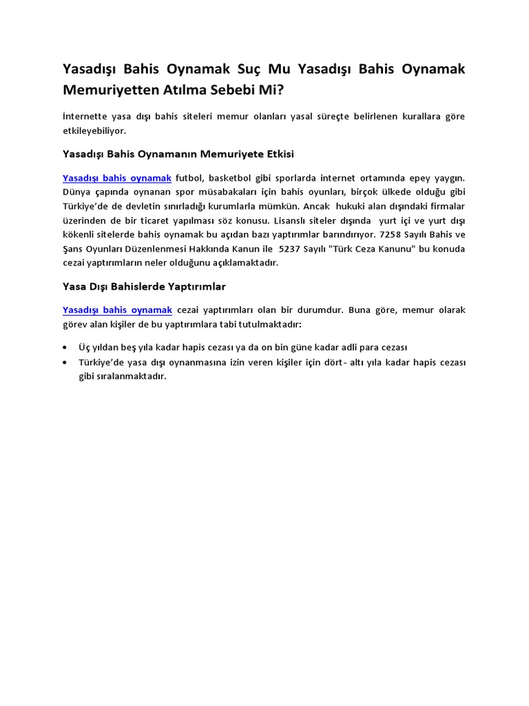 Yasadisi Bahis Oynamak Suc Mu Yasadisi Bahis Oynamak Memuriyetten Atilma Sebebi Mi